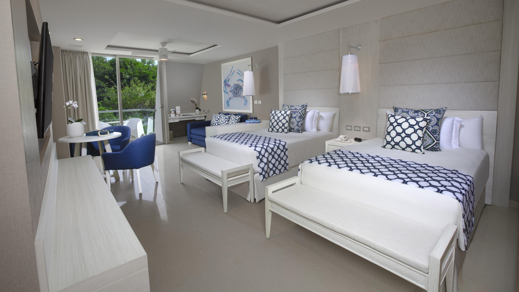 The newly renovated Superior Junior Suites of the Grand Sirenis Riviera Maya Resort & Spa bring our uniquely designed, comfortable rooms to an increased level of modern luxury and style. The advanced sleek, contemporary design of each 560 sq ft units offer maximum relaxation with spectacular views. Suites are available with the option of a king sized bed or two double beds.